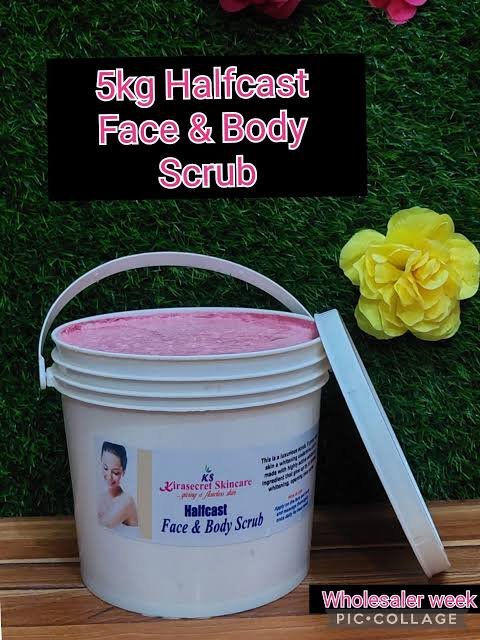 HALFCAST FACE AND BODY WHITENING SCRUB, This is a Lightening/ Whitening Face and Body Scrub that target the pores for ur skincare products to work on ur skin perfectly to achieve your desired skin tone, This face and Body Scrub is Effective in clearing out dark spot, Dull skin ,Blemishes uneven skin tone ,dark Knuckle, and Black heads,